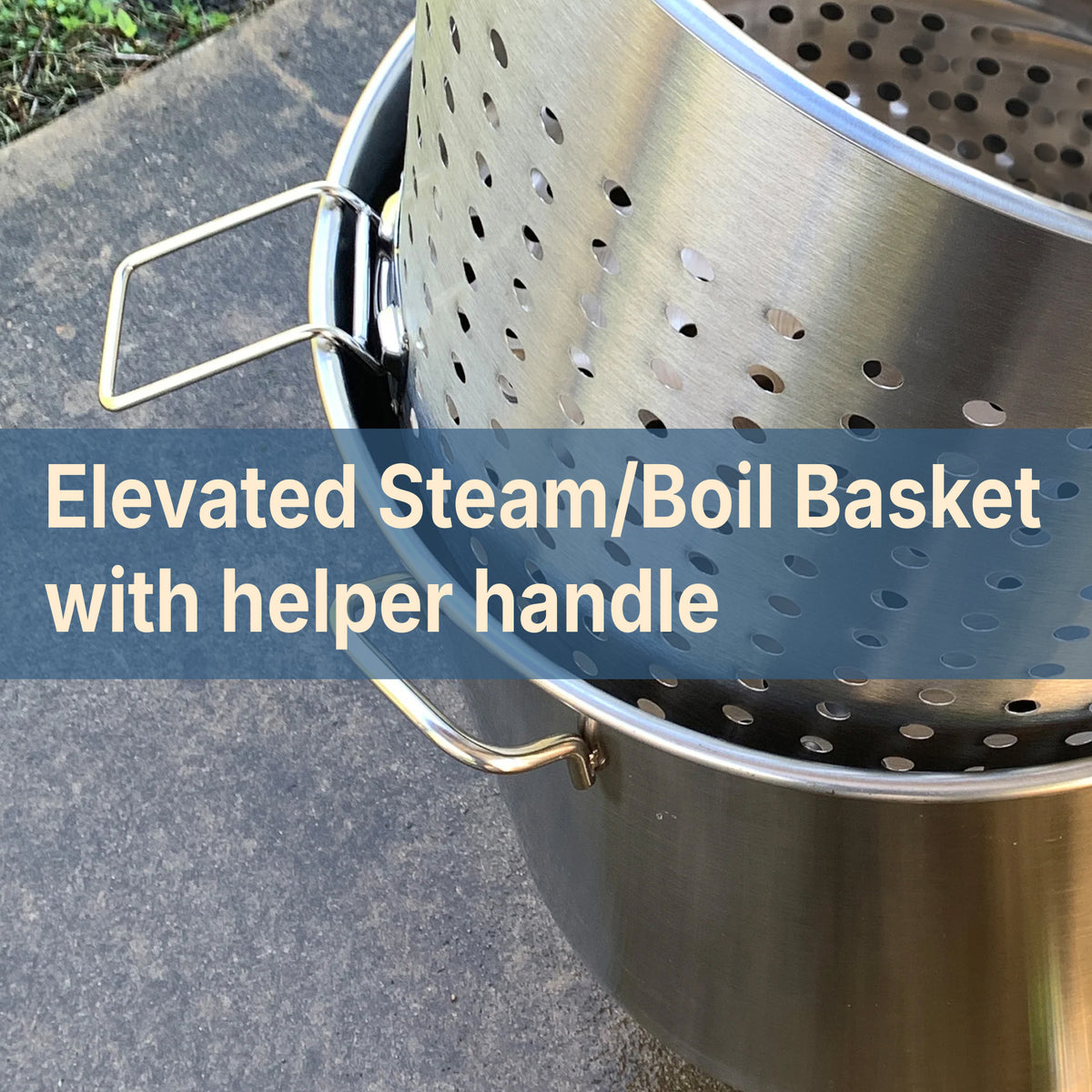 Designed for outdoor cooking enthusiasts who enjoy hosting large gatherings, this is the perfect kit with options to boil or steam. This versatile cooker kit delivers the performance and durability you need whether boiling seafood, steaming vegetables, or preparing a classic low country boil.
