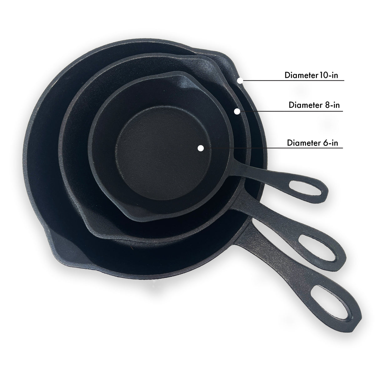 6-in, 8-in, and 10-in Cast Iron Skillet Set