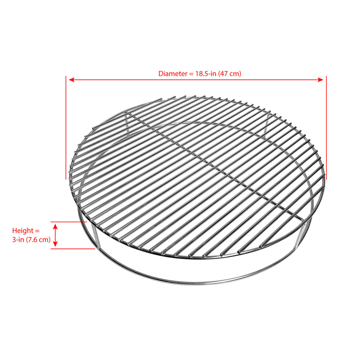 The 18.5-in diameter grill grate is large enough to please any backyard grill master and the small grill gap won't lose your hotdogs.