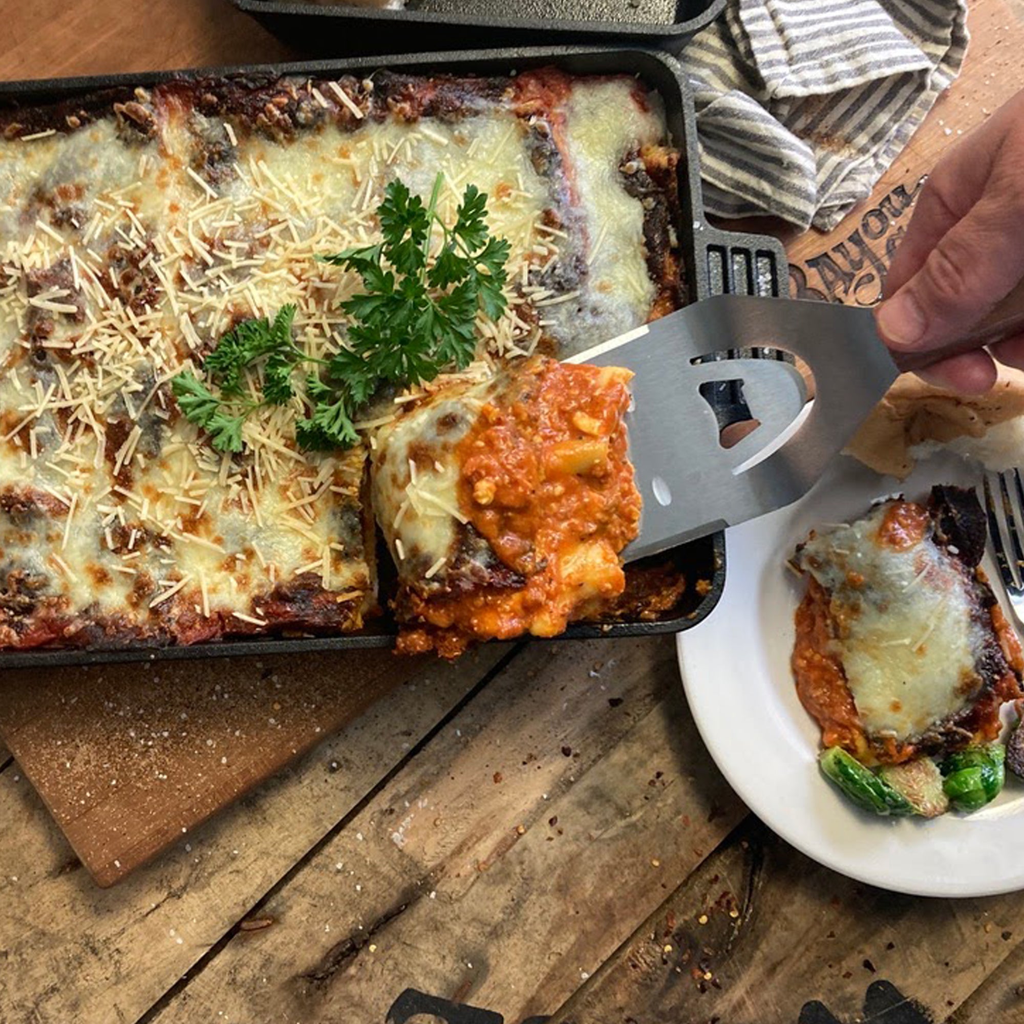 This 9 x 13-in Bake Pan retains heat evenly, making it ideal for baking cornbread, biscuits, cobbler, and deep dish pizza. Perfect for roasting chicken and pot roast. Gather with family and friends for warm dinners or Sunday get-togethers. Whatever occasion, Bayou Classic cast iron cookware adds a warm farmhouse feel to the modern kitchen. Bottom of pan is etched with an alligator for a unique bayou detail.