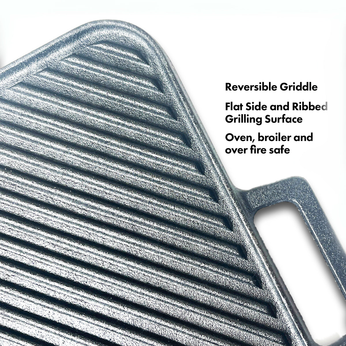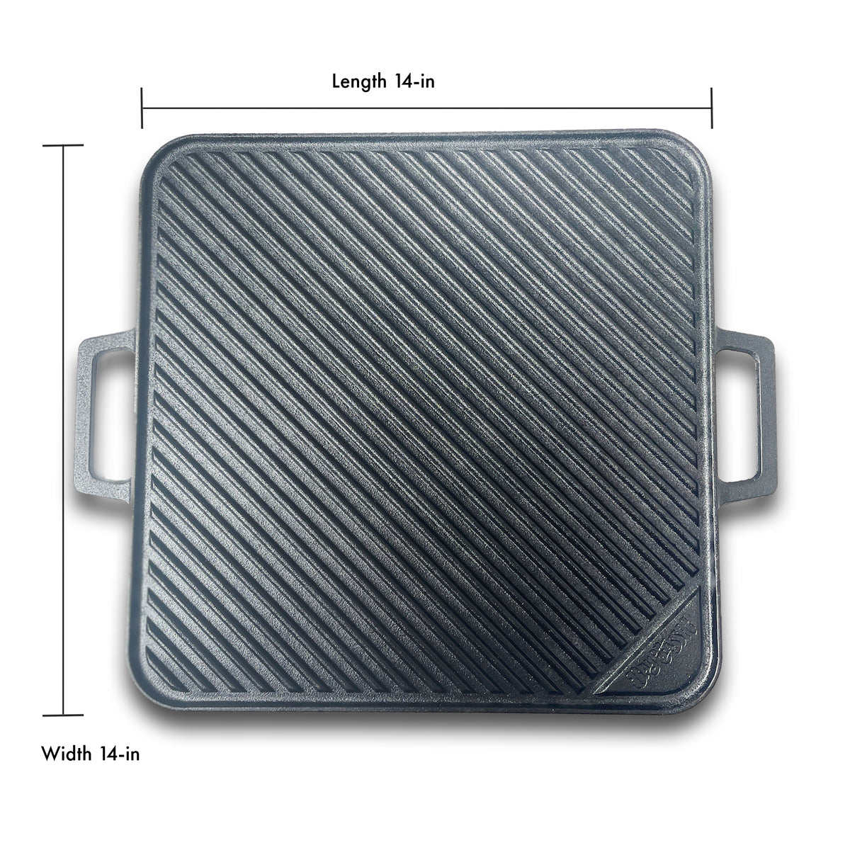 Bayou Classic® Reversible Square Griddle brings rustic charm of cast iron cooking to your backyard or campsite.