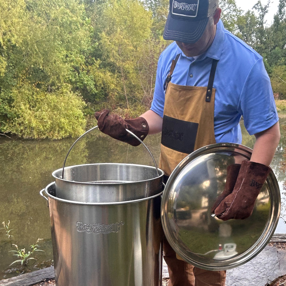 Bayou Boilers are the traditional stockpots for backyard crawfish and crab boils. Full-Size Basket maximizes the stockpot capacity for large batch cooking. Locking Helper Handle enables steady lifting and draining of crawfish, crabs, shrimp, lobster, low country boil, and peanuts.