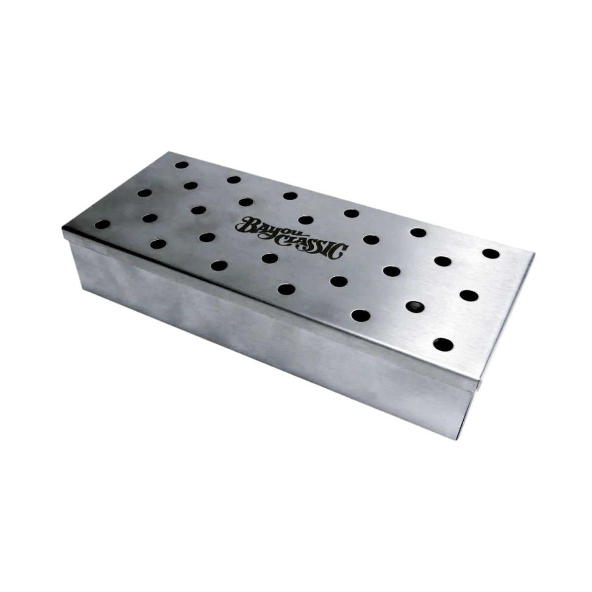 - Stainless Chip Smoker Box - Fill with your choice of pre-soaked wood chips to infuse your barbecue with delicious smoky flavors.