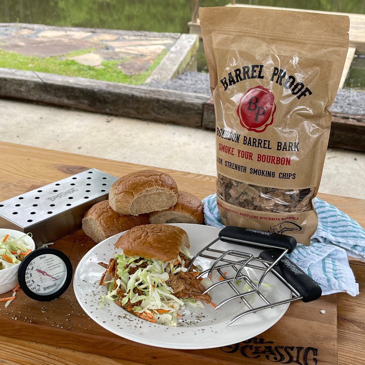 - Barrel Proof Smoking Chips - packaged from authentic Kentucky bourbon barrels.